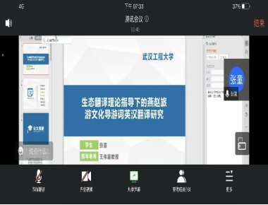 随后,我院硕士生指导教师与外国语言文学研究生、翻译硕士专业学位研究生分成七组,通过线下与线上相结合的形式开展研究生创新学术论坛。每个小组由4名评议老师及10到12位硕士研究生组成。评议组长分别由何广惠、邓军涛、凃朝莲、汪桂芬、陈玢、程建山和张云峰老师担任。