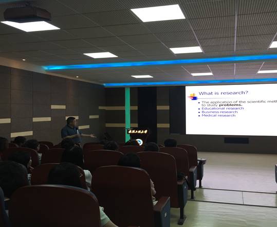 [通讯员熊元元] 6月22日下午,美国新思路研究中心主任、《语言与交际季刊》等国际杂志主编黄金岩教授在文科楼315报告厅为外语学院广大师生带来题为“Publishing Your Researchin an International Journal: Tips from an Editor's Perspective”的学术讲座。