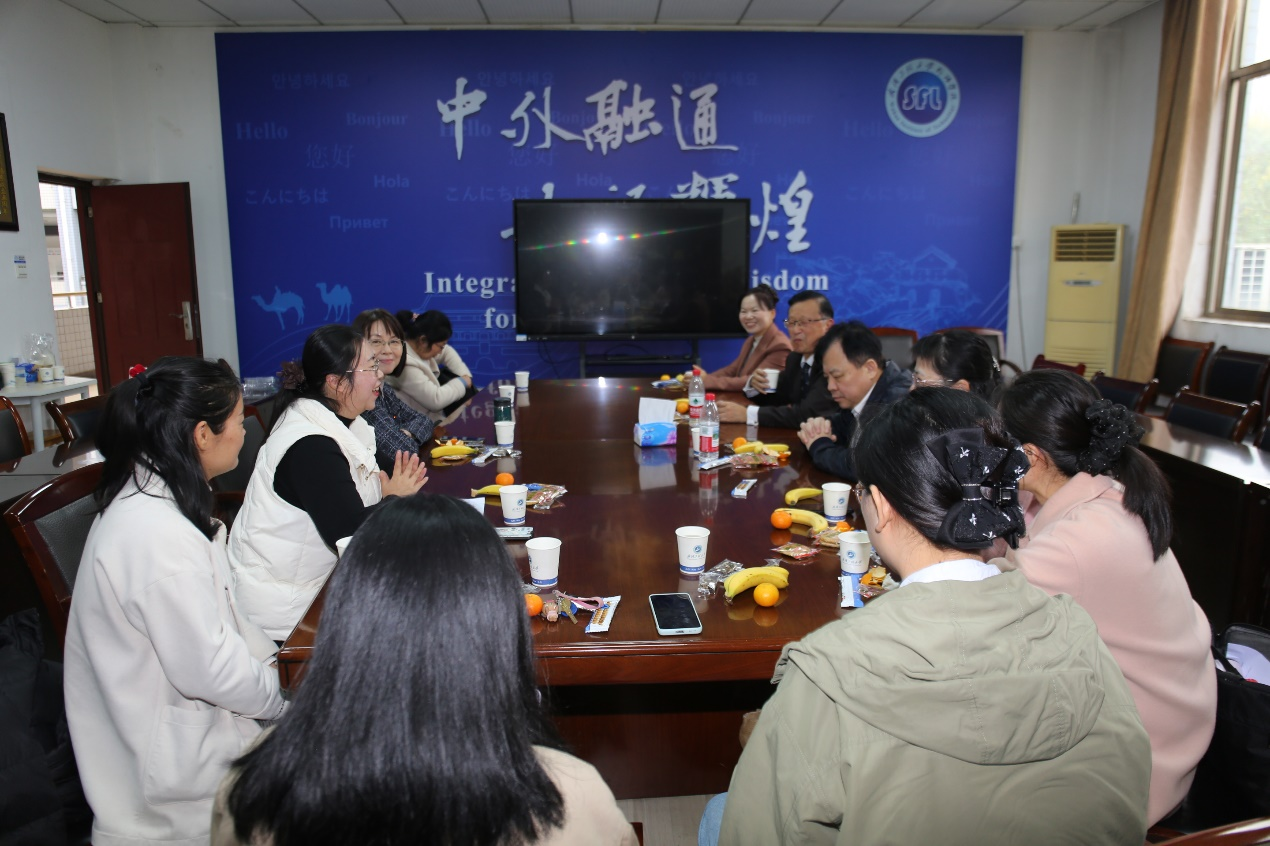 (通讯员 谢玲玲 张艳梅)10月27日下午4:00-5:30,在世界汉语教学学会副会长张新生教授专题讲座结束后,我校外语学院在文科楼308会议室举行专业建设座谈会。张新生教授与我院教师就汉语国际教育专业建设齐聚一堂,共商专业建设与发展大计,共话复合型人才培养新路径。我校国际交流与合作处原处长、外语学院原党委书记兼院长彭石玉教授莅临讲座现场。汉语国际教育专业全体教师及学校“E+”国家级实验区负责人凃朝莲教授、陈丽珠副教授参与交流。座谈会由汉语国际教育教研室主任谢玲玲主持。