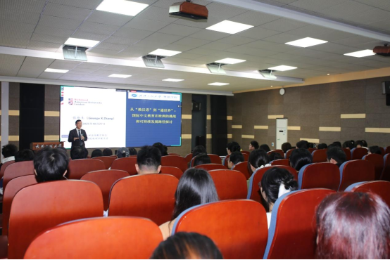 (通讯员:牛梦洁,吴纪璁,李琦)10月27日下午,英国理启蒙大学 (Richmond American University London) 荣誉教授、英国特许语言学家协会 (CIoL) 荣誉会员 (Hon FCIL)、世界汉语教学学会 (ISCLT)副会长和欧洲汉语教学协会(EACT)会长张新生教授应邀做客我校,在文科楼315报告厅作了题为《从“教汉语”到“通世界”:国际中文教育在欧洲的挑战与可持续发展路径》的学术讲座。讲座由外语学院副院长邓军涛教授主持,学院近百名师生参加学习交流。