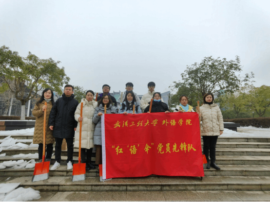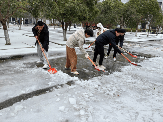 (通讯员 周贝)近日,受强冷空气影响,一场突如其来的冰雪天气给师生校园安全出行带来了不小的困扰。外语学院党委迅速响应学校号召,组织“红‘语’伞”党员先锋队开展铲雪除冰活动,为师生在校学习生活保驾护航。