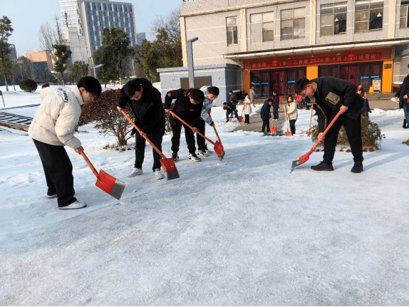 先锋队成员们充分发挥模范带头作用,他们分工合作,有的负责浇灌开水融化冰块,有的负责清扫积雪,有的负责铲除结冰,确保学生就餐和上课的必经之路都安全无虞。在他们的带动下,许多师生也自发加入到铲雪除冰的行列中,用实际行动为维护校园安全出一份力。