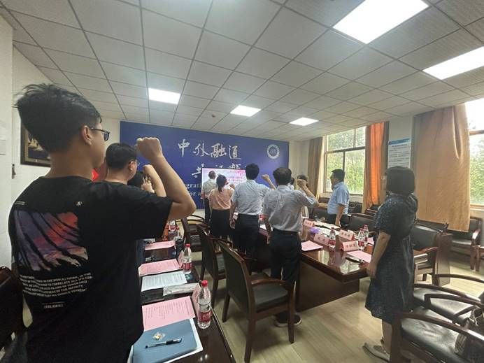 活动在庄严的国歌声中拉开帷幕,全体与会人员肃立奏唱国歌。随后,在支部书记张云峰领誓下,党员们重温入党誓词,誓言铿锵有力,展现了同志们对党的忠诚与坚定信念。