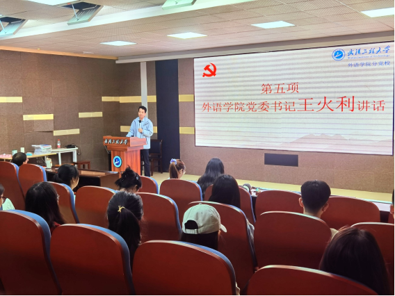 最后,外语学院党委书记王火利致辞。他首先对全体学员表示热烈的欢迎和衷心的祝贺,并指出党校培训是加强党员队伍建设、提高党员素质的重要途径。王火利书记对本期学员提出了殷切期望:一是要深刻认识到党课学习的重要意义,保持高昂的学习热情,树立正确的学习态度;二是以白求恩远赴重洋救死扶伤为例,摒弃“功利入党”想法,坚定理想信念,扛牢“走在前,挑大梁”的使命担当;三是要注重理论与实践相结合,把学到的党的理论知识运用到实际工作中去,为推动学院各项事业的发展贡献自己的力量。