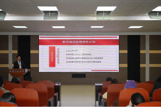 (通讯员 周贝 邵梦迪)为深入学习贯彻党的二十届三中全会精神,扎实推进党员教育工作,11月28日上午,外语学院分党校邀请马克思主义学院戚建博士开展专题讲座,主题为“为服务中国式现代化建设——统筹推进教育科技人才体制机制一体改革”。学院党委书记王火利、党委委员、专职组织员及师生党员代表、党外知识分子等80余人参加了活动,会议由学院党委副书记丁春毅主持。