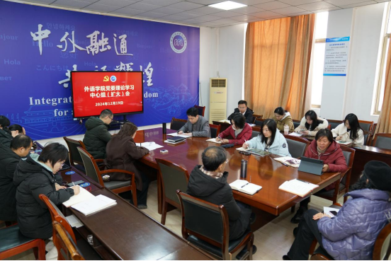 (通讯员 赵家玮)12月19日上午,外语学院党委在文科楼308会议室召开党委理论学习中心组(扩大)会议。学院党委委员、专职组织员、党支部书记参加学习活动,会议由学院党委书记王火利主持。