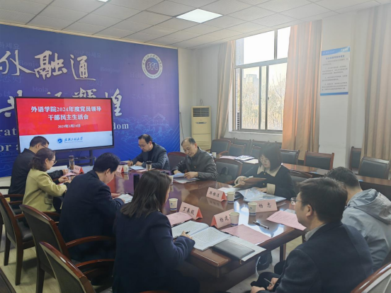 (通讯员 赵家玮)3月20日下午,外语学院党委在文科楼308会议室召开2024年度中层党员领导干部民主生活会,学校第六督导组组长、校党委常委、副校长喻发全和招生与就业工作处处长刘念、主任科员韩雅洁到会指导,学院领导班子成员参加会议,院工会主席列席会议,会议由学院党委书记王火利主持。