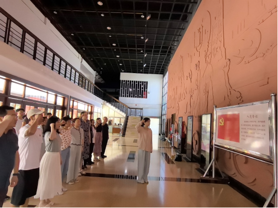 参观结束后,全体师生党员面对鲜红的党旗,高举右拳,重温入党誓词,表达了对党忠诚的坚定决心。