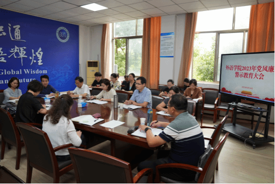 (通讯员 陈顺)为深入贯彻落实党的二十大关于坚定不移全面从严治党精神,根据学校党委关于开展党风廉政建设宣传教育月活动要求,9月14日上午,外语学院党委在学院308会议室召开2023年党风廉政警示教育大会,学院领导班子成员、党委委员、院长助理出席会议,会议由学院党委书记王火利主持。