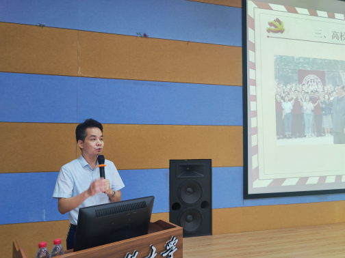 9月15日下午,外语学院党委书记王火利讲授题为“百年未有之大变局视域下的高校院系基层党组织党风廉政建设”的廉政党课,党课主要从三个方面内容展开,一是深刻认识百年未有之大变局的基本内涵。新一轮科技革命和产业变革深入发展、国际力量对比深刻调整、和平与发展仍然是时代主题等时代特征,表明世界处于变革调整期,在审视一些重大问题时,必须将其置于百年未有之大变局的背景之下进行考量。二是深刻认识高校院系党风廉政建设的使命。面对百年未有之大变局,应当深刻认识高等教育肩负的使命,只有坚持立德树人,着力培养社会主义事业建设者和接班人,才能为建设社会主义现代化强国提供有力的人才保证。为了营造良好的育人氛围,高校院系基层党组织应当强化政治功能,加强党风廉政建设,大力弘扬清廉守正、担当实干之风。三是深刻认识高校教师师德建设的根本要求。作为高校教师,要深入理解党风廉政建设与师德师风建设之间的关系,两者之间是辩证统一的,加强党风廉政建设的重要任务之一,就是要引导教师自觉加强自身师德建设,而提升教师的职业道德修养,是促进党风廉政建设的重要举措。高校教师应当以《新时代高校教师职业行为十项准则》为遵循,争做学生为学、为事、为人的大先生。