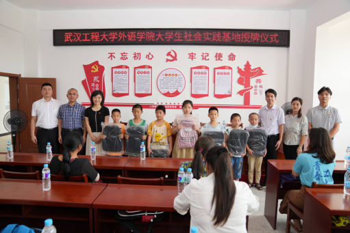 为深化“我为群众办实事”实践活动,学院党委前往金岭示范区中心小学对接支教活动。王火利在出席大学生社会实践基地挂牌仪式时指出,武汉工程大学外语学院结对帮扶中心小学,利用专业建设优势为小学生免费辅导英语,赠送精心策划设计的少儿英语“课程大礼包”,一是充分彰显了外语学院党委践行党的宗旨的自觉性,用实实在在的行动为人民服务;二是充分凸显了外语学院党委推进“我为群众办实事”实践活动的主动性,发挥自身专长弥补乡村基础教育师资紧缺短板;三是充分体现了外语学院党委在推进乡村振兴战略中有所作为的大局意识,深入基层一线聚焦教育事业发展,主动出击解难题、办实事、成好事。学院党委副书记徐思思全面介绍了支教活动实施方案,副院长别尽秋、专任教师张云峰代表学院为小学生们捐赠了学习用品。金岭示范区中心小学校长李阳受聘为学院“语”你同行志愿服务团队校外指导老师,张云峰、陈顺、周贝三位老师受聘为金岭示范区中心小学青少年辅导员。