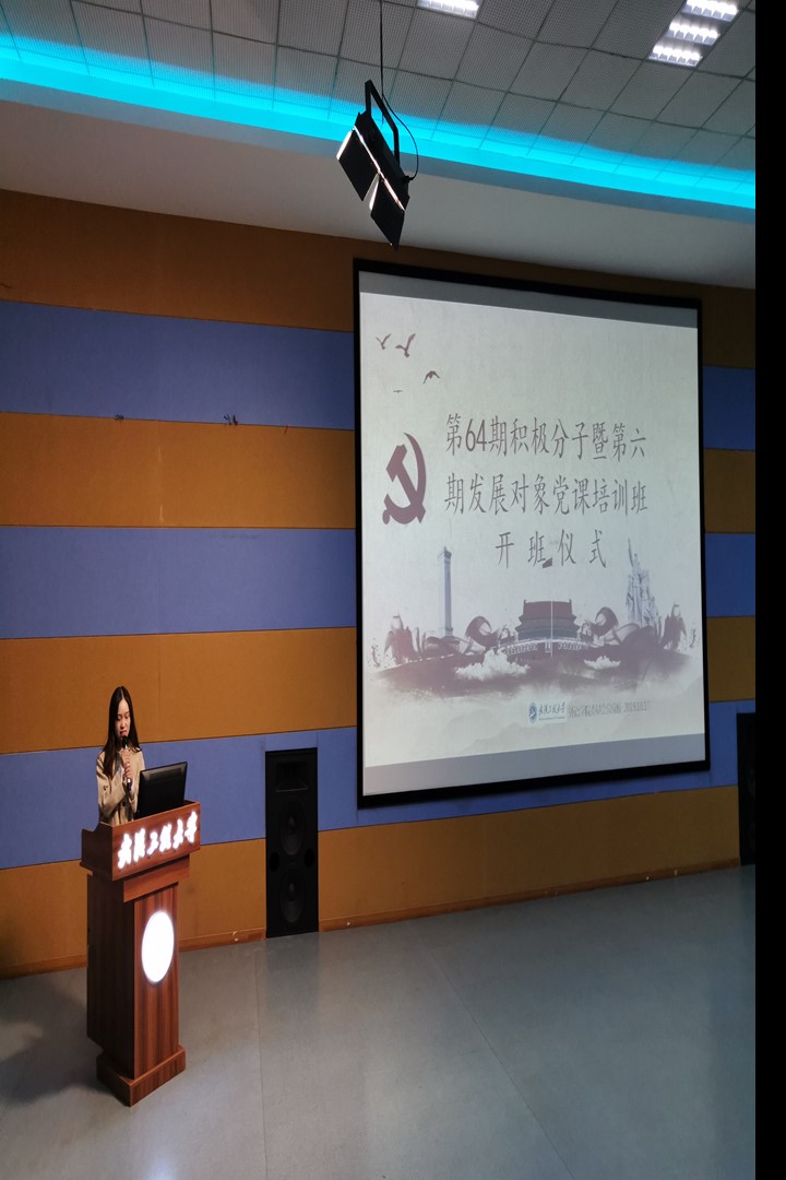 最后,陆新发表讲话。陆新为全体学院介绍了党员培训的内涵、目的和学习方法。同时他对学习班学员提出了三点希望与要求:一是希望学员们弘扬优秀传统文化,认真学习党的最新理论成果和具有时代特征的思想,要将新时代中国特色社会主义理论体系融入到自身的学习和发展中;二是鼓励学员们勤于实践,将实践与理论学习相结合,在实践中检验学习成果;三是希望学员们能够将在党课课堂的学习与“不忘初心、牢记使命”主题教育相结合,学有所得、学有所悟、学有所用。陆书记在最后强调,本次入党积极分子和发展对象培训班恰逢全党上下热烈开展“不忘初心、牢记使命”主题教育,希望各位优秀的同学牢记自己的入党初心,做好先锋模范,在日常学习生活中践行初心,多做奉献,早日成为光荣的中国共产党党员。