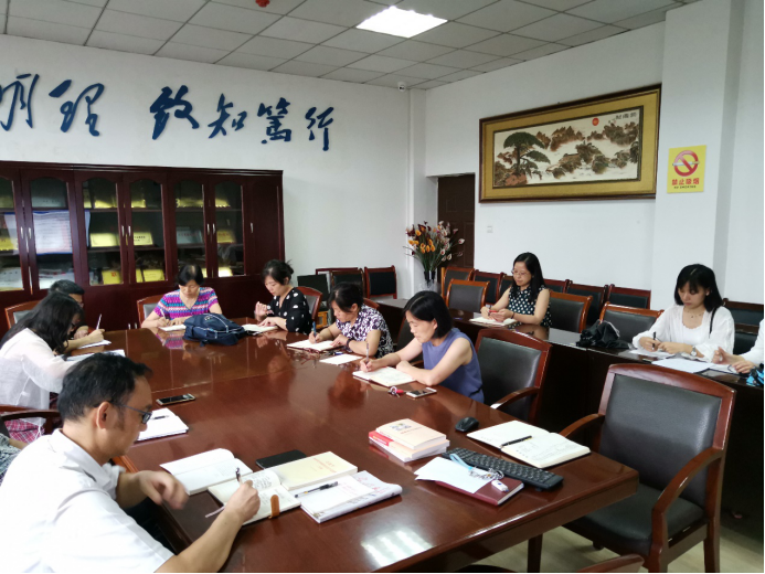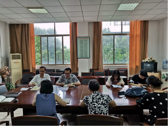 (通讯员顾泽文)7月4日下午,在组织全体教职工党员集中观看电影《邹碧华》之后,外语学院党委在文科楼308召开党委理论学习中心组扩大会,会议由党委书记陆新主持,党委委员、各党支部书记、党务干事参会。会议的主要内容有:学习习近平总书记在“不忘初心、牢记使命”主题教育工作会议上的重要讲话精神;学习《习近平新时代中国特色社会主义思想学习纲要》;学习张富清、邹碧华、黄文秀先进事迹;学习《新时代党性教育读本》、《公职人员廉政教育手册》、《漫说形式主义官僚主义》。