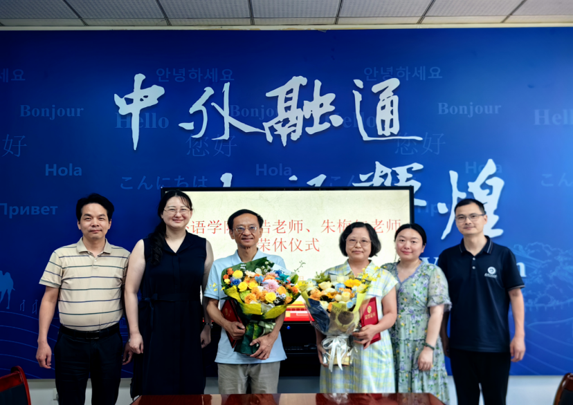 本网讯(通讯员:杨志)春风桃李忆往昔,岁月芳华寄深情。2025年7月3日,外语学院为光荣退休的胡浩、朱梅红两位老师精心举办了一场充满温情与祝福的“撷英岁月 感恩有你”荣休会。学院党委书记王火利、党委副书记丁春毅、副院长邓军涛、工会主席杨志及各教研室代表十余人齐聚一堂,共同表达对两位老师的不舍与敬意。