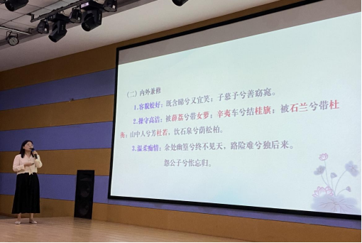 贾文霞则以《离骚》《山鬼》等经典楚辞作品为切入点,结合古今画作,引领学生领略中华文化的博大精深,激发了学生的文化自信与责任感。