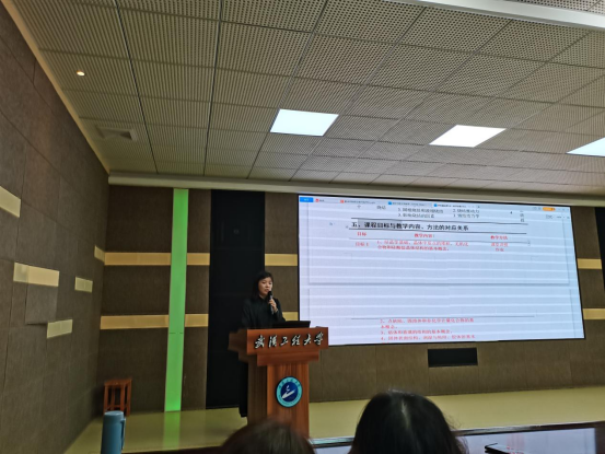 会议第二项,学校督导何广惠教授就期初教学检查中的问题对全体教师进行了说明,并且将其他学院的优秀做法和经验进行了介绍。何教授结合工程认证的的要求,对外语学院的大纲制定、试卷批改、论文规范等提出了建设性意见。