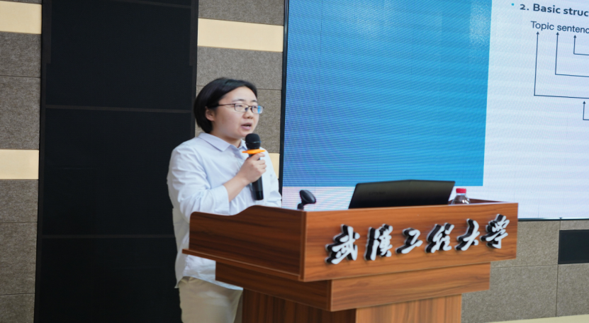 英语专业教研室的刘晨老师讲授的则是如何写主题句,对学生们普遍能力比较薄弱的部分进行了分析,并提出了建议,简洁明了,逻辑清晰。