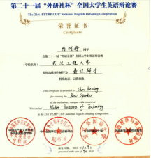 柯嘉敏:英语专业本科毕业生。本科期间多次代表武汉工程大学参加英国议会制辩论赛,多次获得外研社杯,IDEA等省级,华东区,国家级奖项,两次获得华东区最佳辩手。现就职于深圳市工业设计行业协会任海外部部长。
