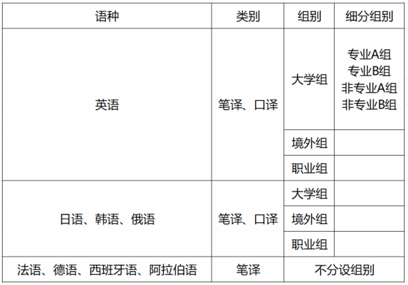 3、法语、德语、西班牙语、阿拉伯语不分设组别。