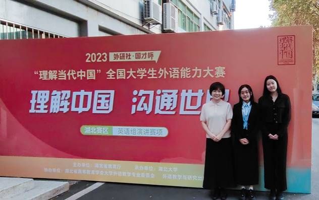 (通讯员 唐清扬)10月29日,2023“外研社·国才杯”“理解当代中国”演讲大赛湖北赛区决赛在湖北大学举行,来自全省各高校的100名选手参加角逐。湖北省教育厅高等教育处副处长吴勃,湖北大学校党委常委、副校长王世敏等出席活动,我校外语学院院长陈明芳任评委之一。