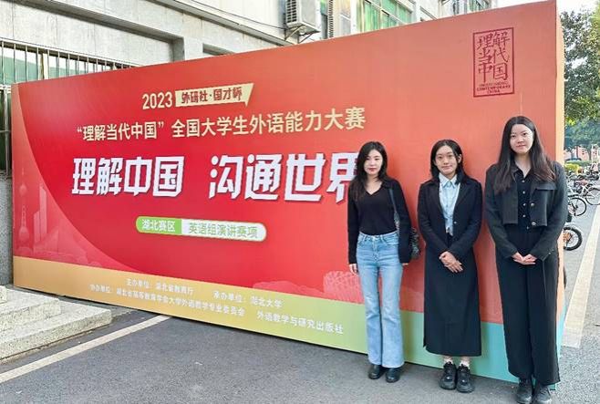 我校经过两轮校赛的选拔,22级英语专业朱亦雯同学和22级英语辅修法学的唐清扬同学代表我校参加省级决赛。由外语学院别尽秋领队,金海、徐昕慧、章樊任指导老师,带领两位同学在湖北省赛中展示外院学子风采,阐述对中国道路的理解与热爱,对回馈、贡献社会的渴望,同时也展现出对用英语讲好中国故事的决心。