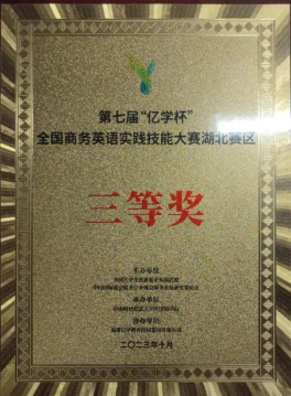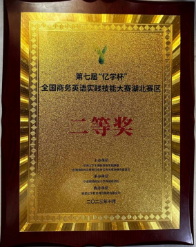 “亿学杯”全国商务英语实践技能大赛由全国大学生创新创业实践联盟、中国国际商会商业行业商会商务英语研究委员会主办,福建亿学教育科技集团有限公司协办。比赛旨在促进普通高等学校商务英语及相关专业的内涵建设、课程改革、教学改革,坚持“以赛促教、以赛促学、以赛促改、以赛促建”的理念,进一步深化产教融合、专创融合、校企合作,全面提升商务英语及相关专业大学生的实践能力与职业素养。本次比赛吸引了湖北省二十多所高校、四十四支队伍参赛。高手云集,竞争激烈,我校学生在比赛中展现出了扎实的专业知识、从容不迫、大方自信的演讲技能以及团队协作的拼搏精神,为学校赢得了荣誉。参与本次比赛的同学也表示,这次是一次很好锻炼自我和提升自我的机会,特别感恩老师的付出和团队的帮助,希望再接再励,再创佳绩。