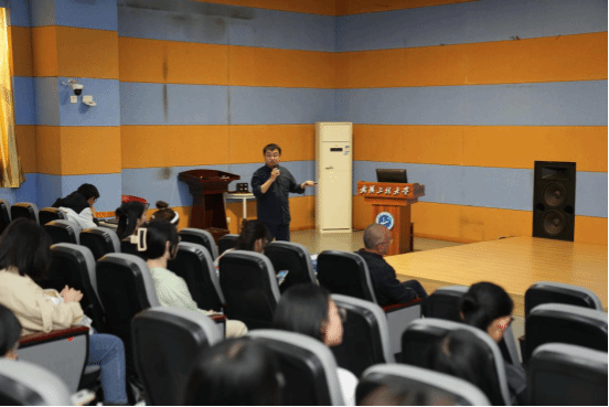 活动最后,学院专门邀请严明老师为同学们开展短视频制作专题讲座。严老师从文案制作、配音、分镜及表现手法等方面,进行了深入浅出的讲解,体现出深厚的专业素养,赢得了同学们的阵阵掌声。