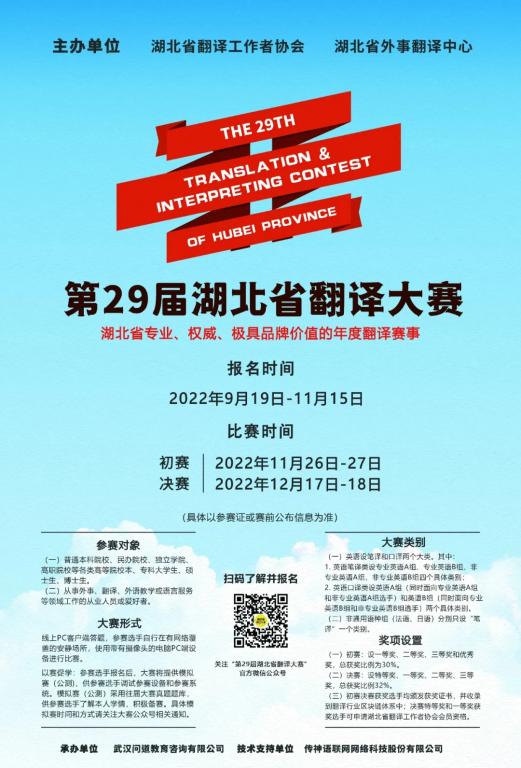 1.信息发布:“第29届湖北省翻译大赛”微信公众号(请扫码关注)