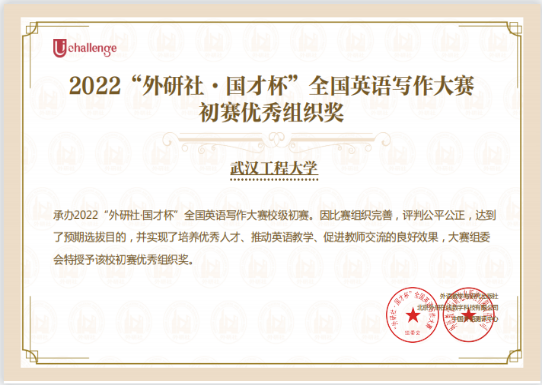 本网讯(通讯员 杨志)2022年10月10日,由外语教学与研究出版社和教育部高等学校大学英语教学指导委员会联合举办、武汉工程大学创新创业学院与外语学院承办的2022年“外研社•国才杯”全国英语写作大赛武汉工程大学初赛在流芳校区顺利举行。