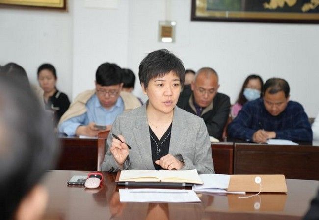 上午11:10,校督导结束了抽查工作后,外语学院紧接着召开了本科教育教学审核评估阶段性整改工作会议,学院领导班子成员、各教研室主任、副主任、支部书记、课程负责人、辅导员、教务员等参加会议。会议由院长陈明芳主持。陈明芳强调,本科教育教学审核评估阶段性整改工作需要及时、精准地落实,大家齐心协力,让存档教学资料达到评估要求的规范和标准。副院长别尽秋传达了校督导针对试卷、毕业论文和实习报告的意见和建议,与会人员认真记录,便于会后分头行动,一一整改。