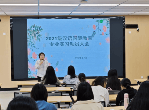 (通讯员孟丽)2024年4月18日汉语国际教育专业在L3307教室召开专业实习动员大会,21级汉教专业全体同学参加了此次大会。本会议由汉语国际教育专业孟丽老师主持,教研室主任谢玲玲、副主任韦钰和吴琼等老师参加了会议。