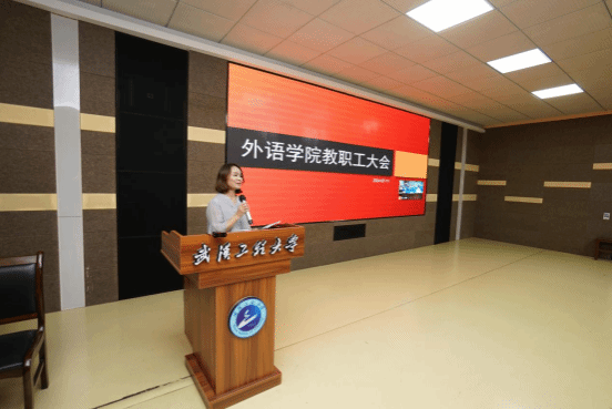 院长陈明芳教授重点回顾了本学期学院在一流学科建设、人文社科项目申报、教学质量提升、就业率与升学率优化、题库建设等关键领域取得的显著成效。她强调,学院的发展必须紧密契合学校总体战略要求,将各项年度重要任务与学校的核心目标紧密相连,特别指出四六级通过率与考研率作为标志性工作,需持续努力以赢得学校的认可与肯定。对于新学期,陈院长规划了提高学科竞赛获奖率、优化培养方案、强化招生宣传、深化就业升学指导、以及科研工作的持续加力等战略部署,旨在推动学院实现“奋进有目标、提升再加力”的发展目标。