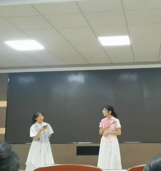 随着音乐的缓缓响起,活动进入第二篇章——歌曲演唱。三位学生以一曲周杰伦的经典歌曲《青花瓷》开场,优美的旋律与动人的歌词瞬间将现场气氛推向高潮,仿佛引领听众穿越时空,置身于烟雨朦胧的江南水乡。随后,两人合唱的古风歌曲《伶人》以悠扬的歌声和深情的演绎,展现了古代伶人的悲欢离合,让听众深刻感受到古风音乐的独特韵味。最后,一人独唱以温婉细腻的歌声收尾,再次展现了中华音乐的柔媚与多情。每一位演唱者都用自己独特的方式诠释着对中华音乐文化的深沉热爱,听众们亦沉浸在音乐的海洋中,久久不能自拔。