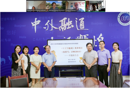 根据国家社科基金中华学术外译项目的开题要求,开题报告会特邀多位国内外资深专家参与评审,为项目的后续工作提供宝贵建议。我校科学技术发展院人文社科处副处长徐思思,世界汉语教学学会和欧洲汉语教学协会副会长、英国理启蒙大学张新生教授,“全球优质孔院”英国谢菲尔德大学孔子学院英方院长Andy Barker教授,华南师范大学文学院特聘教授、出土文献语言研究中心主任张玉金教授,中南民族大学外语学院副院长李敏杰教授,湖北省翻译协会常务副会长、我校教学名师外语学院彭石玉教授及项目组核心成员出席开题报告会。我校外语学院副院长邓军涛教授主持开题报告会。