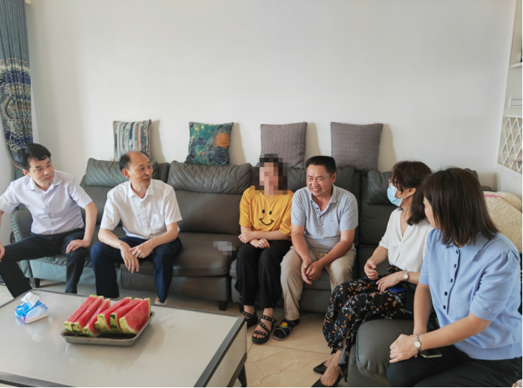 (通讯员顾泽文)为着力推进党员干部下基层察民情解民忧暖民心实践活动,深入一线关爱和服务学生,7月11日上午,校党委常委、副校长喻发全冒着酷暑看望外语学院留校学生,赴江夏区走访2019级汉语国际教育专业家庭经济困难学生小徐同学家庭,招生与就业工作处处长刘念和外语学院党委书记王火利、院长陈明芳、党委副书记徐思思参加慰问走访活动。
