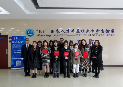 (E+实验区负责人、英语专业教研室主任凃潮莲为获奖选手颁奖)