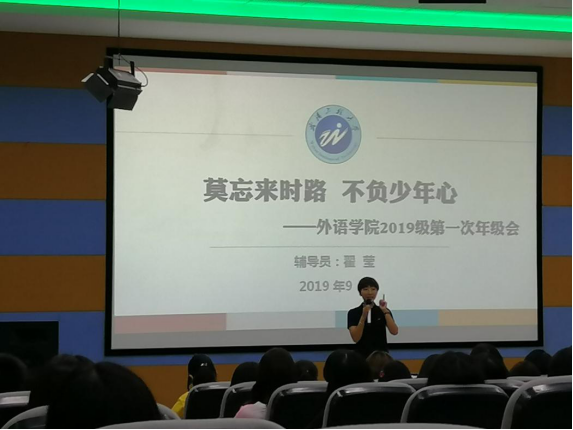9月5日上午11时,外语学院于文科楼313室召开了2019级全体本科生的第一次年级会,本次会议由2019级辅导员翟莹老师主持召开,2019级全体本科生参加。