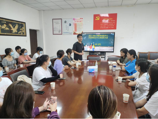 (通讯员向瑜)又是一年秋意盎然,又是一年开学佳季。江城金秋,阳光不锈,微风正好,2022年9月30日中午,阳光与微风律动秋天的韵脚,相遇和记忆激荡时空的回响,武汉工程大学教学信息中心外语学院分中心信息员大会于文科楼308正式召开,会议由外语学院教学信息中心主任向瑜主持,副主任蔡俊伟主讲,全体外语学院信息员参加,并邀请外语学院副院长别尽秋代表学院教学质量中心莅临会议总结发言。