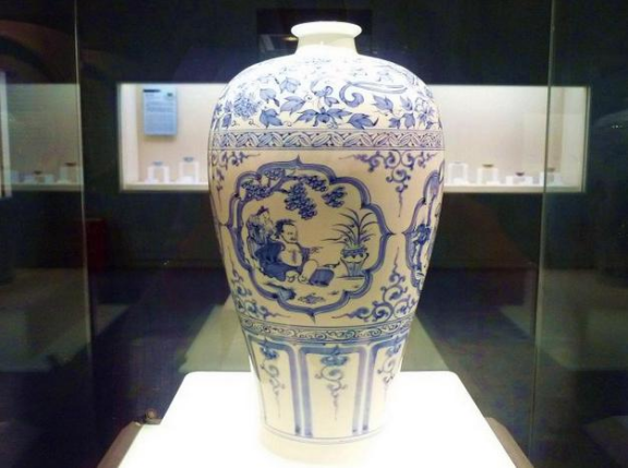 在参观过程中,同学们对元青花四爱图梅瓶产生了浓厚的兴趣。元青花四爱图梅瓶为元代文物是元青花瓷器中的精品之作。梅瓶腹部设有四个开窗,分别绘制王羲之爱兰、陶渊明爱菊、周敦颐爱莲、林和靖爱梅鹤,故名“四爱图”。从四个角度参观梅瓶,同学们不约而同的回忆起这四句诗词,仰天俯地感怀寄,揽竹品兰情趣幽。采菊东篱下,悠然见南山。出淤泥而不染,濯清涟而不妖。梅鹤因缘,妻梅子鹤。文化艺术的熏陶默默的增强着同学们的文化认同感和中华民族共同体意识。