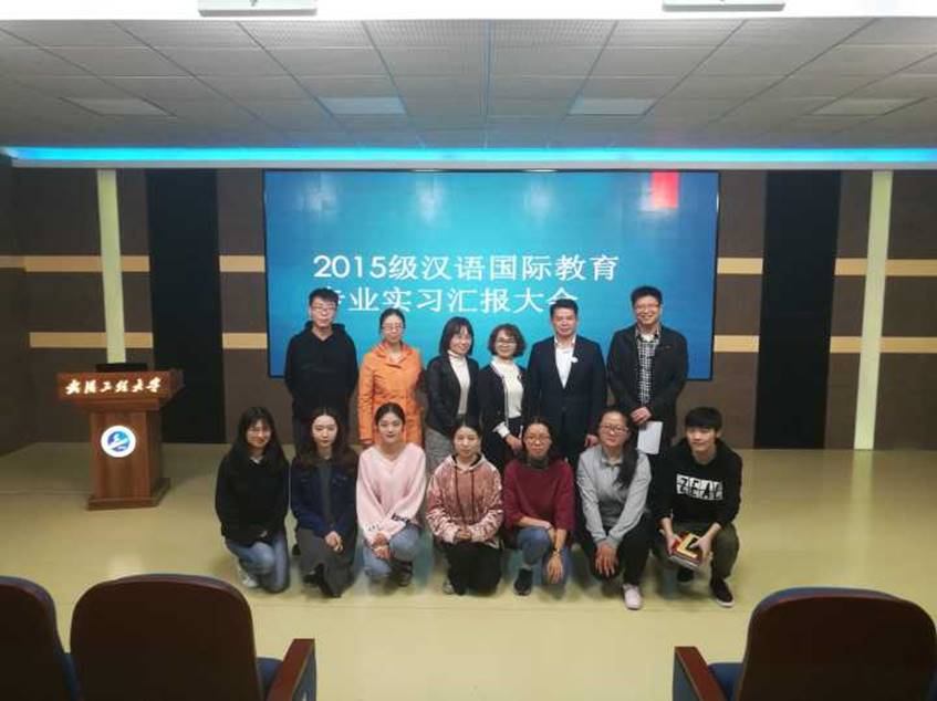 2018年10月25日下午2点,2015级汉语国际教育专业实习汇报大会在文科楼315顺利举行。外语学院院长陈明芳教授、外语学院副院长杨建兵博士、泰国盛唐集团董事长唐小冬先生、外语学院团委书记任鹏老师、汉语国际教育教研室主任谢玲玲博士和孟丽博士、汉语国际教育专业教研室程平博士等出席会议。2016级、2017级和2018级汉语国际教育专业学生也到现场观摩聆听。