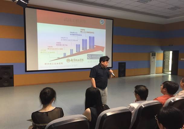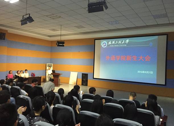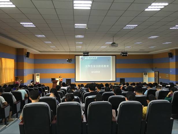 会上,彭书记就武汉的地理优势、光谷的重要性、武汉工程大学的建校历程以及外语学院的发展历史等方面作了简要介绍,使新生对武汉——这个美丽的江城有了更深透的了解,对学校和学院的发展有了更清晰的认识,对专业的学习和未来的发展有了更多的信心。接下来彭梦老师作了《大学生安全防范教育》报告。分别从“防火、防盗、防骗、防抢、防安全事故” 五个方面结合实例进行了详细的讲解,对大学期间可能遇到的安全事故及应对措施作了说明。旨在提高新生的安全防范意识,减少人身伤害风险。最后,由2016级辅导员孙墨老师向新生介绍入学安排及日常教育管理相关事宜。