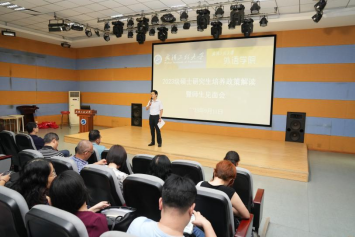 副院长邓军涛作“研究生培养政策解读”专题指导。邓军涛结合《武汉工程大学研究生培养管理办法》《武汉工程大学研究生学术道德规范实施办法》《武汉工程大学研究生“三助一辅”工作实施办法》等一系列重要文件,从学籍管理、培养管理、学位管理和奖助体系四大板块为新生详细解读了学校和学院关于研究生培养各环节的制度、规则与要求。