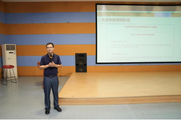 首先,院长陈明芳代表学院全体师生向2023级研究生新生表示热烈欢迎,并对学院学科专业概况、师资队伍力量、人才培养目标、学科竞赛获奖等方面进行了简要介绍。陈院长勉励全体新生珍惜求学时光,勤于实践,勇于创新,在兼收并蓄中拓展知识广度,在交叉融合中提升创新能力,秉承“格物明理,致知笃行”的校训精神,心怀“中外融通,共语辉煌”的使命愿景,真正成长为一名有家国情怀、厚实基础、过硬能力和国际视野的复合型外语人才。
