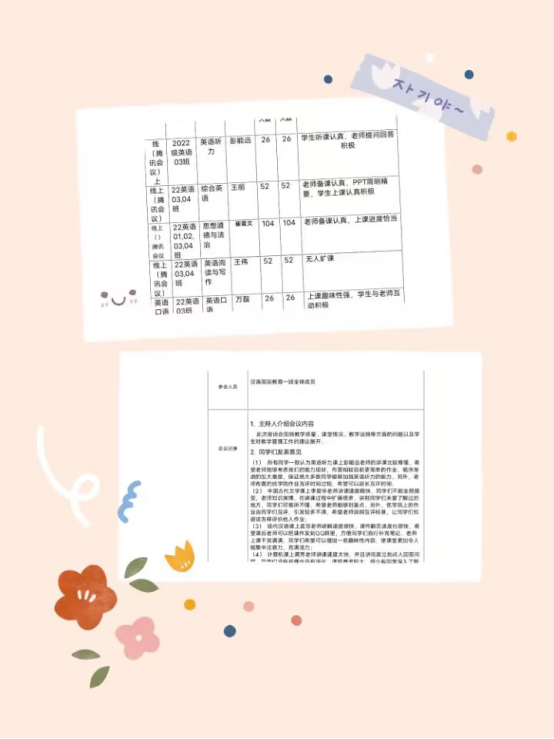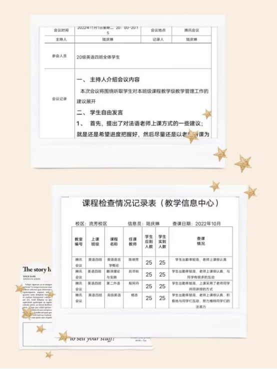 图2:22英语三班课程情况记录表、22汉教一班学生座谈会记录表