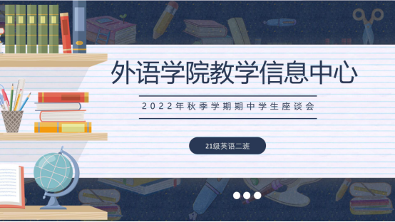 (通讯员向瑜)春去秋来,时间似人群川流不息,留下我们的足迹;春华秋实,岁月如落红化作春泥,只为下一次的收获与沉淀。每一次积淀的过程,都孕育着向上的力量,激励我们不断推陈出新,不断总结提升自我。2022年11月1日~11月6日,外语学院2022年秋季学期期中学生座谈会在2020、2021和2022级各班圆满举办,并在本次活动中详细分析了外语学院各班在教学质量、教学设施、课堂考勤等方面存在的问题,在积累经验的过程中努力推进教学质量提高,促进教学设施完善,激励各班同学努力学习,踔厉奋发,勇毅前行。