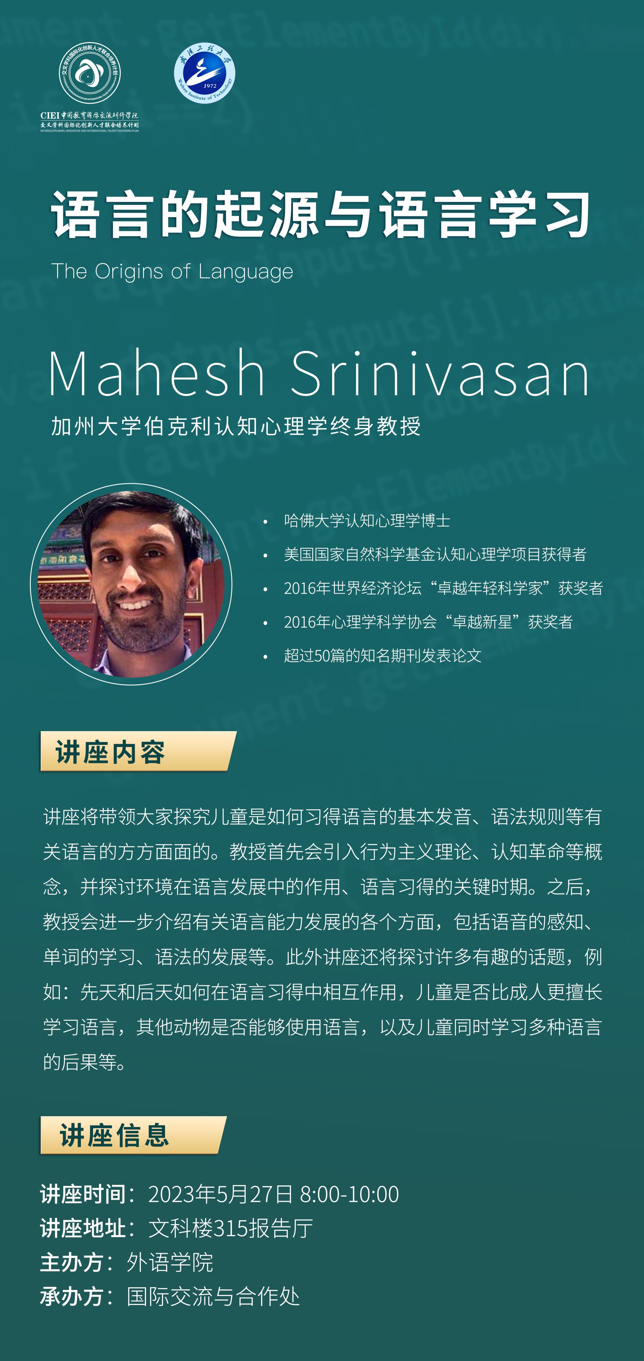 主讲:Mahesh Srinivasan(加州大学伯克利认知心理学终身教授)