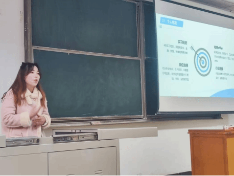 同学们围绕自我定位、求职岗位信息匹配、简历制作方法、笔试面试注意事项、实习实训经历、签三方协议流程等六个方面向大家进行了详细介绍,并鼓励在场的同学要主动投递简历,提前查阅投递公司信息,沉着应对笔试和面试。