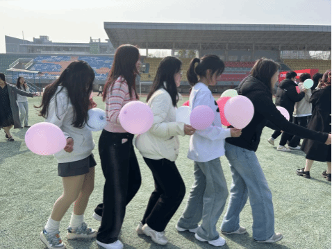 大家挥动的手臂,跳跃的身影,在集体舞《Good Time》中展现了独属于女生们的灵气。女性因自信而美丽,跳出自我,跳出青春。用气球连接起来的“超级毛毛虫”,同学们喊着“121”的口号,团结一致迈着整齐的步伐,不仅是胜利的步伐,更是女生之间的情谊。