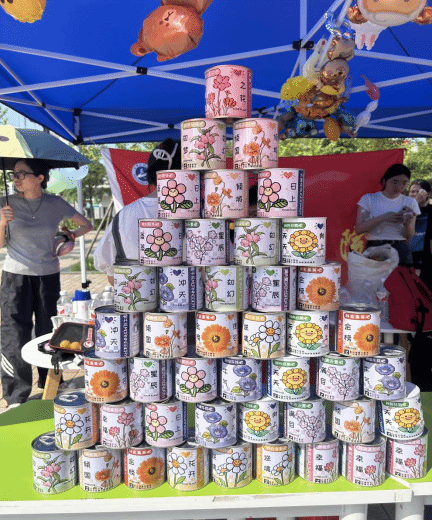 成功通关的挑战者们自行挑选各类罐头植物盆栽和卡通玩偶等小礼物,作为他们参与此次活动的美好回忆和纪念。