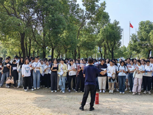 (通讯员 陈顺 舒苑)为进一步深化平安校园与和谐校园的建设目标,锻炼大学生在面对火灾等突发事件的防范和应急能力,增强学生的自我保护与风险应对技能,筑牢校园消防安全保护线。外语学院联合校保卫处于9月30日上午在学校东门空地开展了2024级新生消防安全知识教育及演练活动。保卫处副处长郭洪伟、主任王子龙,外语学院辅导员陈顺及2024级学生参加了本次活动。